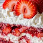 hourThis is a no-bake strawberry banana pudding dessert featuring layers of vanilla wafers, fresh strawberries, bananas, and creamy vanilla pudding, topped with whipped topping.